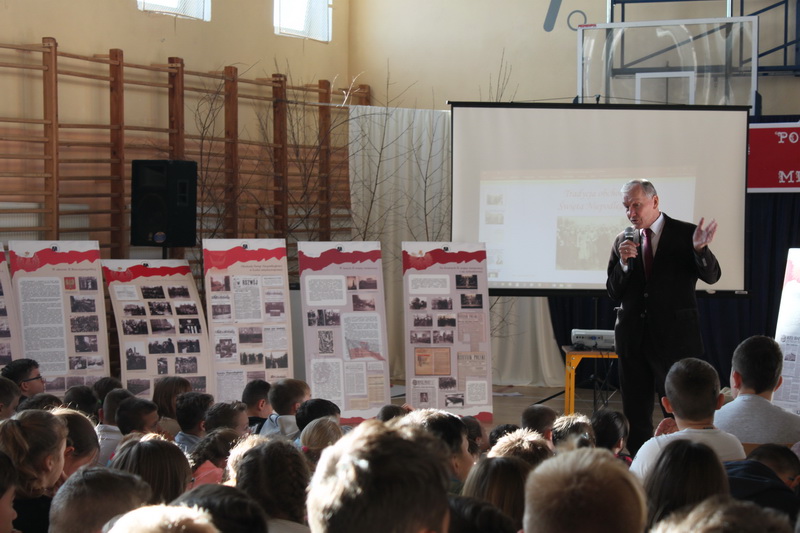 Jej prezentacja w naszej szkole związana była z przypadającą w bieżącym roku 100 rocznicą odzyskania niepodległości. Celem wystawy było pokazanie, w jaki sposób Polacy obchodzili Święto Niepodległości w czasach II Rzeczypospolitej oraz jak kultywowali tę tradycję w latach okupacji hitlerowskiej 1939 – 1945, a także w okresie od lipca 1945 r. do lat osiemdziesiątych XX w.